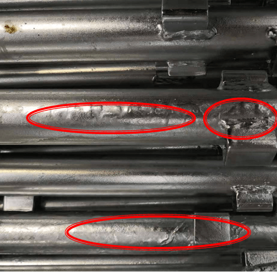 5.鋅溫太低,導(dǎo)致工件取出后鋅液流動(dòng)性不好,沉積表面形成鋅瘤。