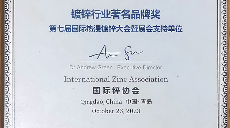 鍍鋅行業(yè)著名品牌獎(jiǎng)